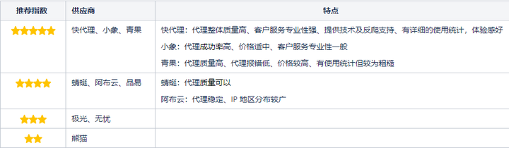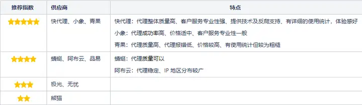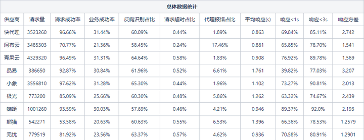 - 业务成功率:1. 快代理 2. 青果云 3. 小象